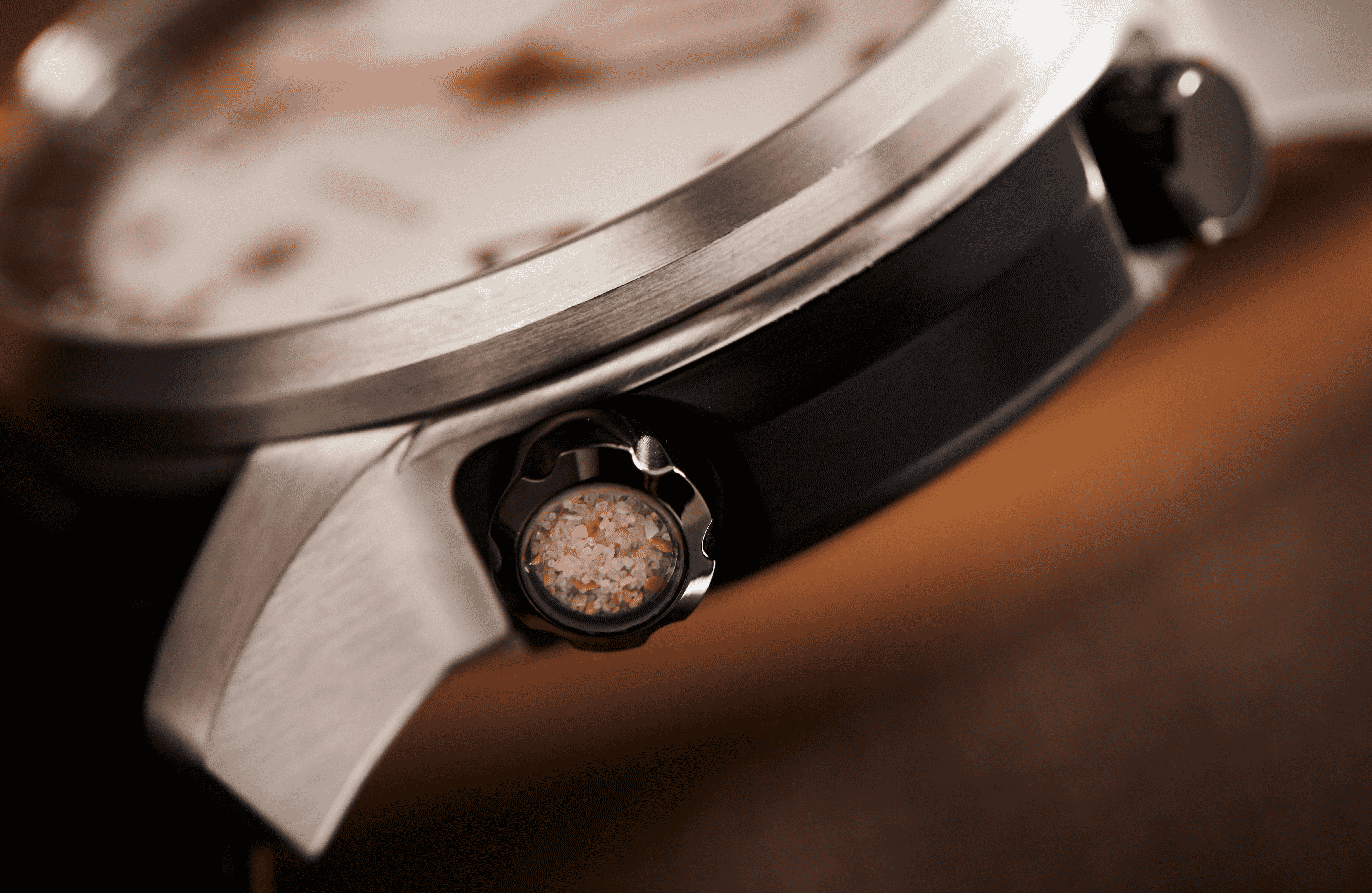 Screw-down crown filled with the unique red earth from the Kimberley – visible through the crown cap